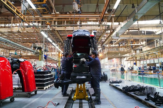 圖為工人在一拖集團工廠的生產流水線上工作。記者 盧燁攝
