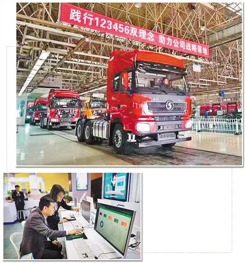 (上圖(tu)(tu):陜汽控股(gu)汽車(che)(che)總裝(zhuang)廠車(che)(che)間內景。下圖(tu)(tu):陜汽控股(gu)員工(gong)正在(zai)測(ce)試“天行健”車(che)(che)聯網(wang)平臺。記者 張 毅攝)