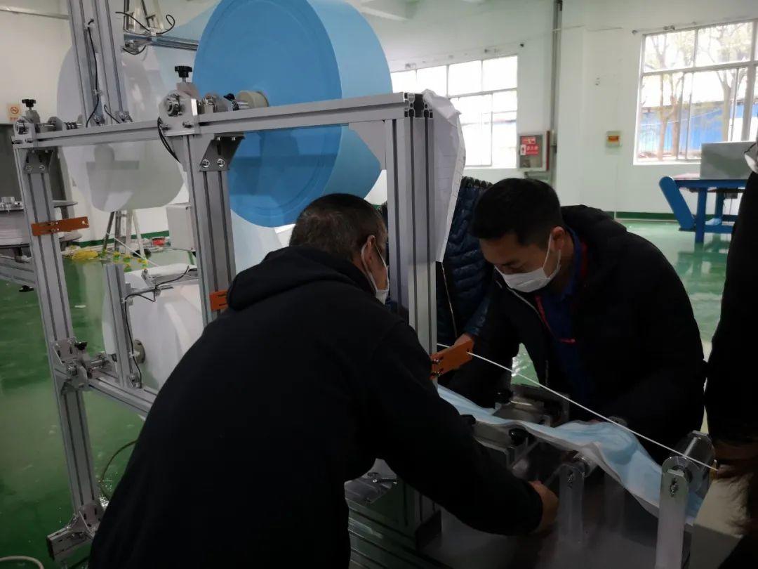紅豆集團工作人員在調試口罩生產線