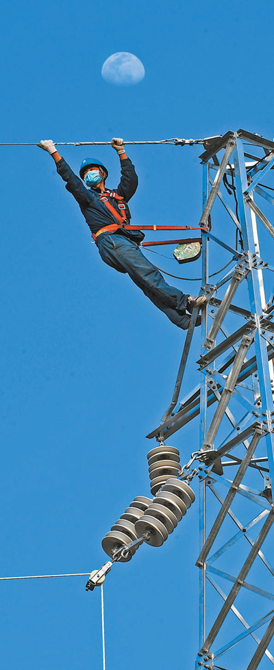 4月(yue)4日,在(zai)安徽省亳州(zhou)市譙城區,國(guo)(guo)網亳州(zhou)供電(dian)公司電(dian)力(li)工人正在(zai)架(jia)設輸電(dian)線路。張延林攝(影像中國(guo)(guo))