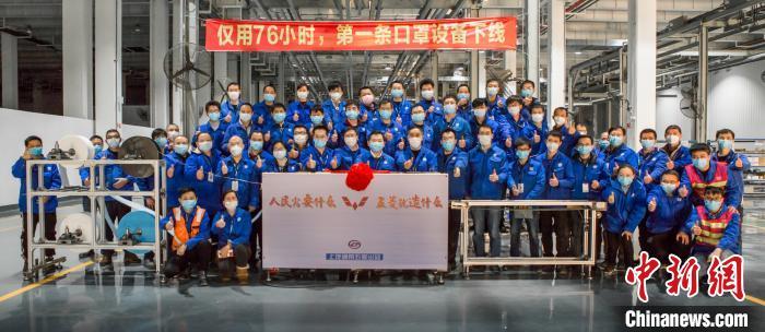 廣西第一臺自主生產口罩機下線現場。上汽通用五菱供圖。