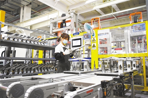 6月22日,在天津海爾洗衣機互聯工廠內,工作人員在檢查零部件。