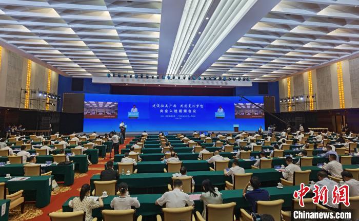 國務院國有資產監督管理委員會和廣西壯族自治區黨委、自治區人民政府7月28日召開“建設壯美廣西,共圓復興夢想”央企入桂視頻會議。圖為南寧主會場。