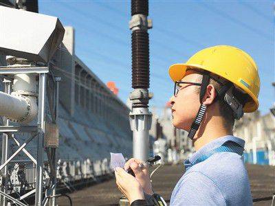 三峽電廠員工正在巡檢三峽廠房頂出線設備。