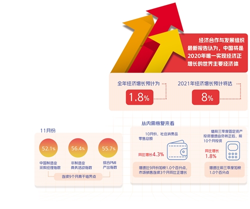 經(jing)(jing)合組織最新報告預測,中(zhong)國(guo)將(jiang)是2020年(nian)唯一實(shi)現經(jing)(jing)濟正(zheng)增(zeng)長(chang)(chang)的(de)世界主(zhu)要(yao)經(jing)(jing)濟體,全(quan)年(nian)經(jing)(jing)濟增(zeng)長(chang)(chang)預計(ji)為1.8%,2021年(nian)經(jing)(jing)濟增(zeng)長(chang)(chang)預計(ji)將(jiang)達(da)到8%。從長(chang)(chang)時段和世界范圍來看,中(zhong)國(guo)經(jing)(jing)濟快速(su)復蘇具有十(shi)分重(zhong)要(yao)的(de)戰略意(yi)義,不僅彰顯了中(zhong)國(guo)制度的(de)顯著(zhu)優勢(shi),更重(zhong)要(yao)的(de)是為加快構建以國(guo)內(nei)大循(xun)環為主(zhu)體、國(guo)內(nei)國(guo)際雙(shuang)循(xun)環相互促進的(de)新發展格局創造了戰略時機和堅實(shi)基礎。