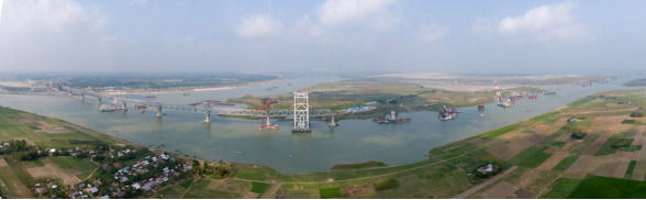 圖為中鐵工業參建的“一帶一路”重點工程帕德瑪大橋合龍