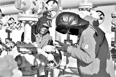 1月6日,中國石油天然氣集團公司青海油田分公司采氣一廠工作人員在協同作業。 中國石油天然氣集團公司青海油田分公司采氣一廠從現場管理和技術措施入手,優化組織運行以及安全環保管控,運用堵漏防漏新技術,鉆井工程提速提效效果顯著。2020年提前2個月完成8億方產能建設任務,新井投產257口,為冬季供氣提供有力保障。
