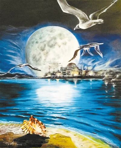 中核集團華龍一號總設計師邢繼創作的華龍一號油畫作品。