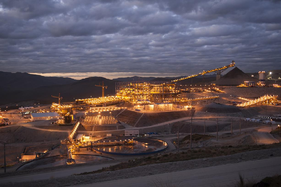 圖為中國五礦位于秘魯的邦巴斯銅礦選廠夜景