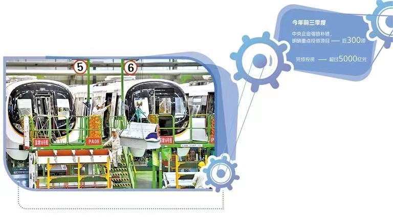 今年以來,中央(yang)企業以有效投資加快產業鏈(lian)強基礎、補短板,保障(zhang)產業鏈(lian)安全穩定發展。統計顯示,今年前三(san)季度,中央(yang)企業圍繞新一代信(xin)息(xi)技術、高端(duan)裝備(bei)制造、糧食安全等產業鏈(lian)領域的(de)卡點(dian)堵點(dian),明(ming)確重點(dian)投資項(xiang)目(mu)近300項(xiang),完(wan)成投資超過(guo)5000億元。