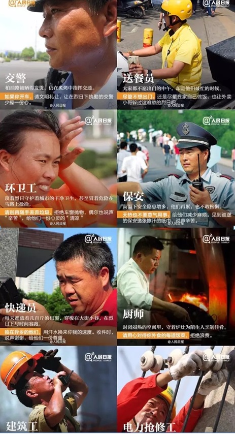 在這樣“紅得發紫”的(de)(de)日子(zi)里,"哪兒(er)涼快上哪兒(er)呆著去"不(bu)(bu)是(shi)句罵人(ren)話,是(shi)深藏不(bu)(bu)露的(de)(de)愛(ai)啊。想(xiang)象一(yi)下,盡(jin)情地癱坐在家中的(de)(de)沙(sha)發上,吹著空調蓋著被,玩著手機(ji)有(you)WIFI,再吃上一(yi)兩塊冰鎮(zhen)的(de)(de)西瓜(gua)。是(shi)不(bu)(bu)是(shi)可以仰天長嘆:人(ren)生如此,夫(fu)復何(he)求(qiu)!但(dan)是(shi)我們居住的(de)(de)房子(zi)、空調的(de)(de)用電、享(xiang)用的(de)(de)西瓜(gua)……這些總要有(you)人(ren)來維(wei)護(hu)。酷暑之下,哪怕揮(hui)汗(han)如雨,也要堅守崗位,毫不(bu)(bu)退縮,一(yi)絲不(bu)(bu)茍,精(jing)益求(qiu)精(jing)。