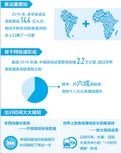 編織一張(zhang)密(mi)度適宜的(de)(de)高(gao)(gao)鐵(tie)(tie)網絡,造福(fu)盡可能多(duo)的(de)(de)民(min)眾。十八大以來,我國高(gao)(gao)鐵(tie)(tie)版圖不斷延伸(shen):2013年(nian)7月,穿越江南(nan)水鄉的(de)(de)寧杭高(gao)(gao)鐵(tie)(tie)開(kai)通;2014年(nian)6月,世界(jie)上(shang)一次(ci)性建(jian)成(cheng)(cheng)通車(che)里(li)(li)程最長(chang)(chang)的(de)(de)高(gao)(gao)速鐵(tie)(tie)路(lu)(lu)蘭(lan)新高(gao)(gao)鐵(tie)(tie)建(jian)成(cheng)(cheng)通車(che);2016年(nian)12月,滬昆(kun)高(gao)(gao)鐵(tie)(tie)全(quan)線通車(che),彩(cai)云之(zhi)南(nan)不再“邊緣”。截至2016年(nian)底,中(zhong)國高(gao)(gao)鐵(tie)(tie)運(yun)營里(li)(li)程突破2.2萬(wan)公里(li)(li),超過世界(jie)其他國家(jia)高(gao)(gao)鐵(tie)(tie)里(li)(li)程之(zhi)和,除(chu)幾條線路(lu)(lu)外(wai),2004年(nian)提出的(de)(de)“四縱(zong)四橫”高(gao)(gao)鐵(tie)(tie)網已全(quan)部建(jian)成(cheng)(cheng)。根據2016年(nian)7月新修訂(ding)的(de)(de)國家(jia)《中(zhong)長(chang)(chang)期鐵(tie)(tie)路(lu)(lu)網規劃(hua)》(2016-2030年(nian)),預計(ji)到2020年(nian),全(quan)國高(gao)(gao)速鐵(tie)(tie)路(lu)(lu)將增(zeng)加到3萬(wan)公里(li)(li)。今(jin)年(nian)繼續(xu)保持高(gao)(gao)鐵(tie)(tie)網絡快速建(jian)設勢頭,就在上(shang)月初,寶蘭(lan)高(gao)(gao)鐵(tie)(tie)通車(che),將使千年(nian)絲路(lu)(lu)煥發更加蓬勃的(de)(de)生機。不久(jiu)后,我們還(huan)將見證張(zhang)呼(hu)客專馳(chi)騁于遼(liao)闊的(de)(de)大草(cao)原(yuan),而西(xi)成(cheng)(cheng)高(gao)(gao)鐵(tie)(tie)也(ye)將讓千年(nian)蜀道不再艱(jian)難。