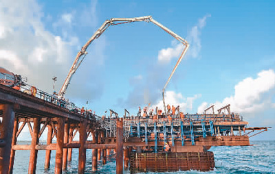 4月21日,馬爾代夫中馬友誼大橋首個墩身成功澆筑。中馬友誼大橋項目部供圖(新華社發)