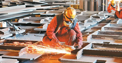 圖為中鐵山橋集團有限公司的工人在鋼橋鋼結構生產車間工作。(新華社記者 楊世堯攝)