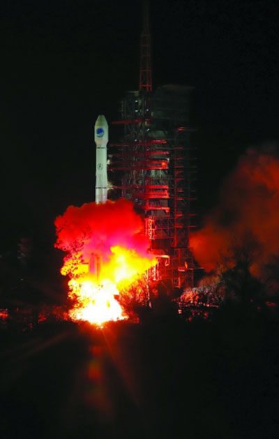 3月30日,我國在西昌衛星發射中心用長征三號乙運載火箭(及遠征一號上面級),以“一箭雙星”方式成功發射第三十、三十一顆北斗導航衛星。(新華社發 梁珂巖 攝)