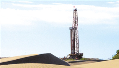 西北油田沙漠中的鉆井(李學仁攝)