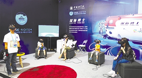 全國科技活動周展廳內,觀眾在深海虛擬技術聯合實驗室進行VR體驗。(本報記者 李芃達攝)