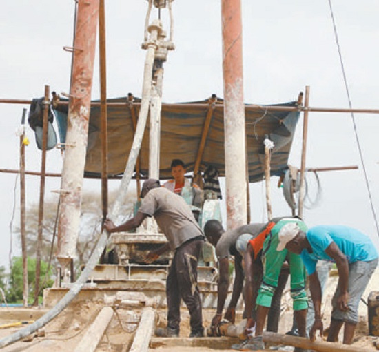 久姆比(bi)村打(da)井(jing)項(xiang)目現(xian)場負(fu)責人王(wang)黎明(ming)說:“這(zhe)里地(di)質情況(kuang)復雜(za),塌孔、漏漿等情況(kuang)經常出現(xian)。”在(zai)沙漠的地(di)質環境中找(zhao)到水源非常困難,有些村莊光選擇打(da)井(jing)點就(jiu)要耗(hao)上一(yi)個多(duo)星期的時(shi)間,在(zai)久姆比(bi)村鉆井(jing)施工現(xian)場附近不遠(yuan)處就(jiu)能看到之前(qian)因塌孔導致打(da)井(jing)失敗(bai)的深坑。