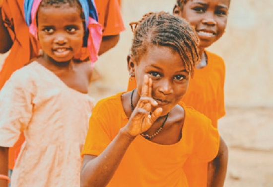 久姆比村鄉村打井工程工地附近的兒童。(記者 呂強攝)