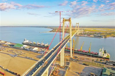 作為非洲主跨徑最大的懸索橋,馬普托跨海大橋連接了莫桑比克首都馬普托和卡騰貝地區,提升了莫桑比克以及南部非洲地區的互聯互通水平。(中國路橋公司供圖)