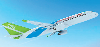 中國研制的C919大客機將成為鋪就“空中絲路”的主力之一,造福沿線各國。(新華社發)