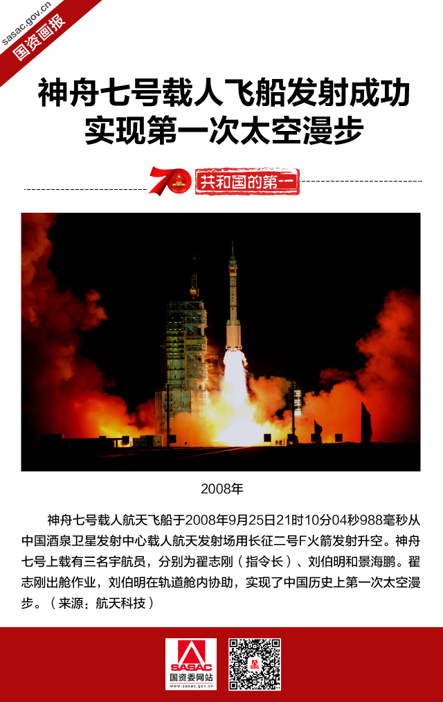 【國資畫報·共和國的第一】神舟七號載人飛船發射成功 實現第一次太空漫步