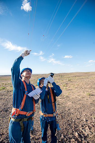 蒼茫戈壁,鐵塔聳立,銀(yin)線(xian)飛舞。239基鐵塔踏“一(yi)帶(dai)一(yi)路(lu)”東風(feng),扛起82.73千米(mi)同塔雙回銀(yin)線(xian)直(zhi)達邊境,經(jing)95.6千米(mi)境外線(xian)路(lu)送至銅金礦亞洲儲量(liang)第一(yi)的(de)蒙古國南(nan)戈壁省奧尤(you)陶(tao)勒蓋銅金礦OT中心變。