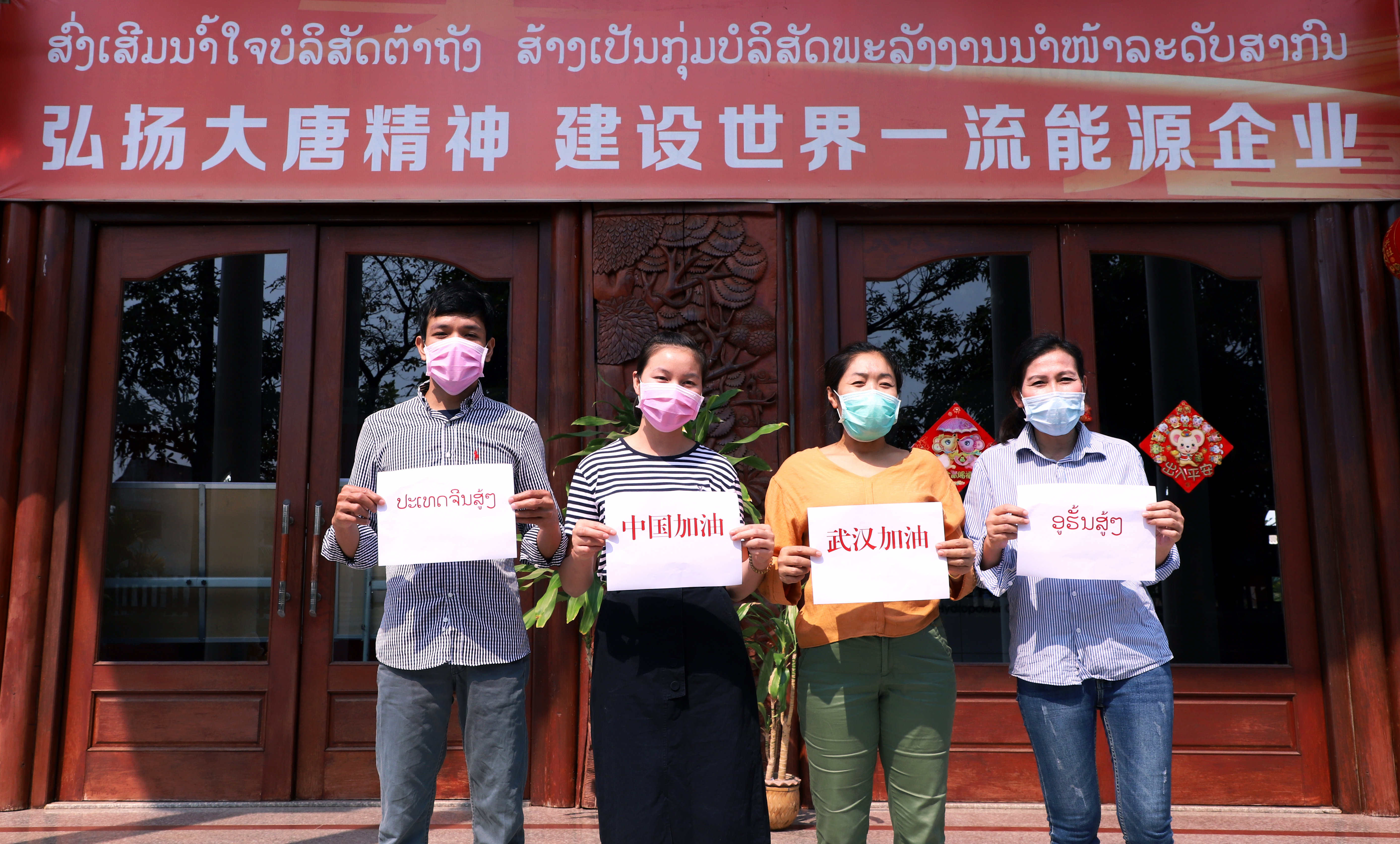 中國大唐老撾北本薩拉康公司老籍職工為中國加油,為武漢加油