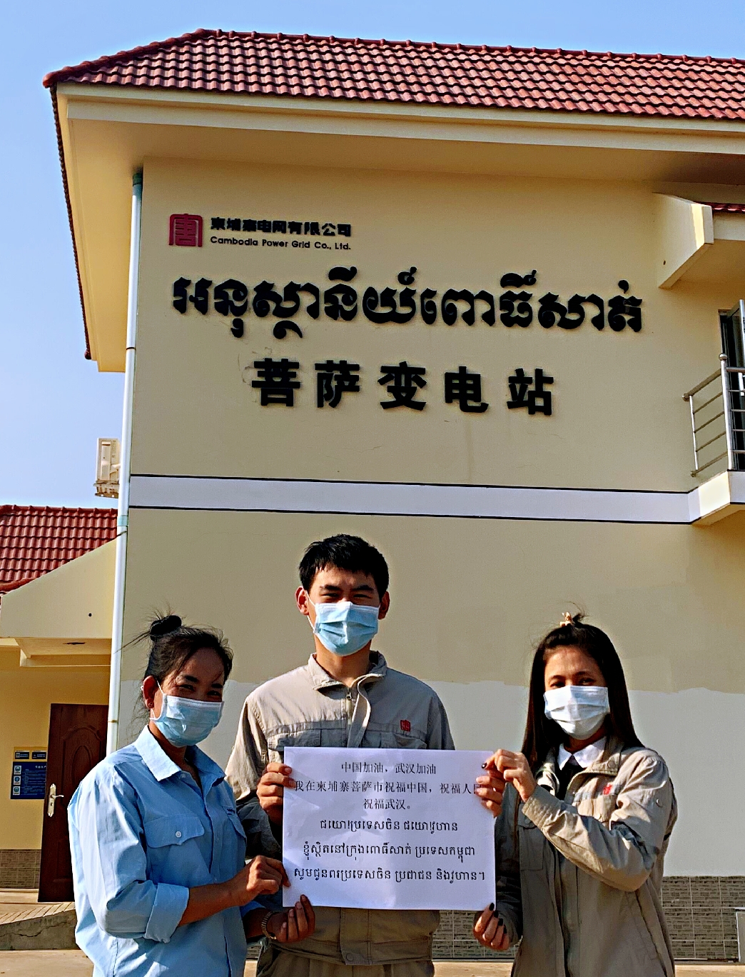 中國大唐東投水柬網職工在柬埔寨祝福祖國,祝福武漢。春天已經到來,勝利就在眼前