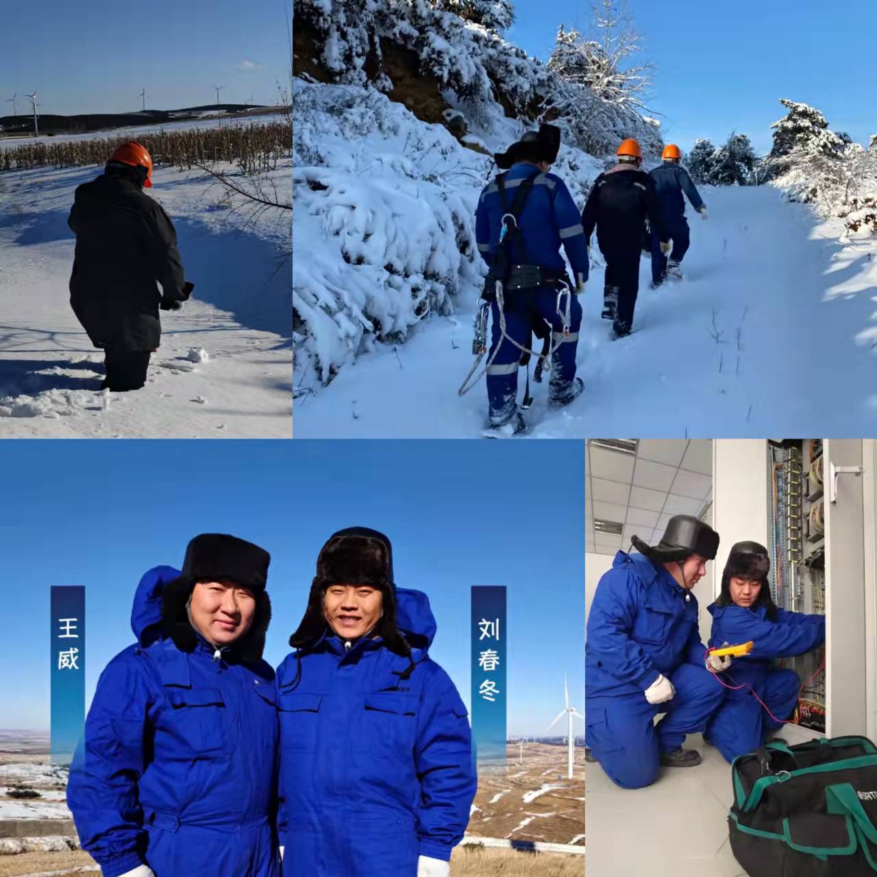 華能烏力吉風(feng)(feng)電(dian)場位于內蒙古通遼(liao)市珠日(ri)河草原,裝(zhuang)機(ji)容量29.55萬千瓦,追風(feng)(feng)者們(men)(men)(men)負責風(feng)(feng)場189臺風(feng)(feng)機(ji)的運維任務(wu)。清晨,受天氣影響,風(feng)(feng)場風(feng)(feng)機(ji)停機(ji)9臺、箱變停運6臺。早上(shang)6點15分,天還沒亮,接到(dao)執(zhi)行消缺任務(wu)的王海光、宋吉達(da)兩(liang)人就乘(cheng)車出(chu)發了(le)(le)。故(gu)障(zhang)(zhang)風(feng)(feng)機(ji)在(zai)草原深(shen)處,又逢路面積雪未化,路上(shang)布(bu)滿暗冰(bing),車行駛一段后就無法前(qian)行,他(ta)們(men)(men)(men)不得不背起二十(shi)多斤的工具包,在(zai)零(ling)下十(shi)幾(ji)度、深(shen)達(da)半米的雪地(di)里(li)(li)徒步。平時5分鐘的路程(cheng),他(ta)們(men)(men)(men)足足走了(le)(le)半個小(xiao)時。從晨光微(wei)熹到(dao)中午時分,二人在(zai)冰(bing)天雪地(di)里(li)(li)排(pai)查(cha)三個多小(xiao)時,終于找到(dao)了(le)(le)風(feng)(feng)機(ji)故(gu)障(zhang)(zhang)原因(yin)。隨著“咔”的一聲脆響,箱變低壓側斷路器合閘成功,風(feng)(feng)機(ji)葉片徐徐地(di)轉了(le)(le)起來(lai)。此時,他(ta)們(men)(men)(men)一摸衣(yi)(yi)(yi)服(fu)才(cai)發現最里(li)(li)層的衣(yi)(yi)(yi)服(fu)已經(jing)由“汗(han)衣(yi)(yi)(yi)”變成了(le)(le)硬(ying)邦(bang)(bang)邦(bang)(bang)的“冰(bing)衣(yi)(yi)(yi)”……