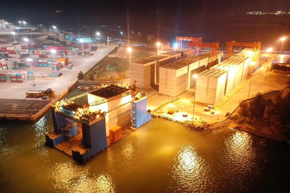 “防波(bo)堤(di)最早(zao)計劃的(de)是拋石堤(di)身(shen)工(gong)藝(yi),但(dan)開工(gong)前不久突然變更成沉(chen)(chen)箱結(jie)構,難度一(yi)下就增大了。”項目常務(wu)副經理(li)郭(guo)志鵬介紹(shao)。2020年12月初,在海(hai)南(nan)洋浦灣曲折的(de)海(hai)岸線上,中交集團所屬中交三航局承建(jian)的(de)海(hai)南(nan)煉(lian)化(hua)100萬噸乙烯(xi)及(ji)煉(lian)油改擴建(jian)碼頭防波(bo)堤(di)項目上演著千噸沉(chen)(chen)箱入海(hai)歸位的(de)精彩一(yi)幕。