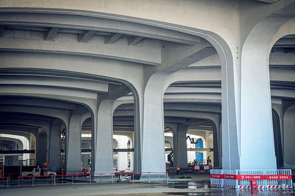 雄安站房一樓大廳清水混凝土開花立柱。