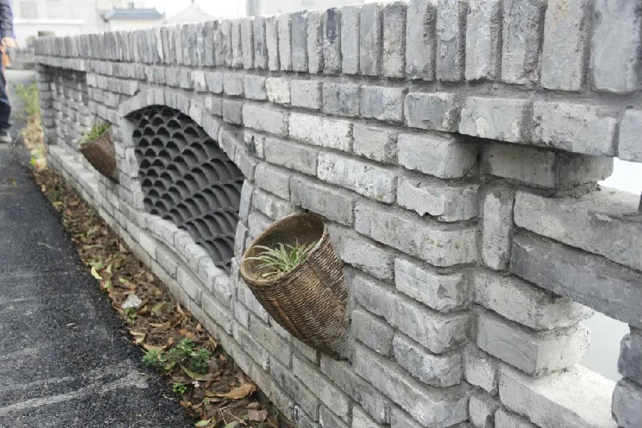 很快(kuai),項目團隊開展頭(tou)腦風暴,結(jie)合靈感,設計了多種青磚(zhuan)與青瓦結(jie)合的(de)(de)擋墻樣(yang)圖。經過現(xian)場對比(bi),欄桿(gan)與擋墻的(de)(de)間隔變換成不同組合,錯落(luo)有致。但如何讓(rang)(rang)擋墻樣(yang)式做得(de)精(jing)致而又能(neng)體現(xian)本村(cun)的(de)(de)特色,林傳栩(xu)想到(dao)了好點(dian)子。在之前鄉村(cun)改(gai)造(zao)的(de)(de)時候,很多原始的(de)(de)陶罐、水缸被村(cun)民廢(fei)棄了。大(da)家統一收集,經過重新打磨(mo)加工上漆(qi),讓(rang)(rang)原先的(de)(de)條石、陶罐、魚(yu)簍、磨(mo)盤等老(lao)物件(jian)成為(wei)了擋墻上精(jing)致的(de)(de)點(dian)綴品。