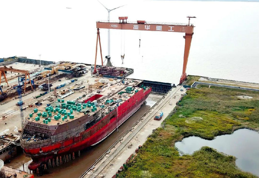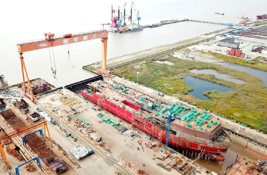 對于(yu)這(zhe)位長215米、型寬(kuan)49米、型深22米的“巨無霸”而言,42個月(yue)的建造時間并不(bu)寬(kuan)裕。為(wei)了(le)(le)順利推進建設,項(xiang)目團(tuan)隊想(xiang)了(le)(le)不(bu)少辦法。一個艏(shou)、艉半船分頭建造再對接的大膽設想(xiang)浮(fu)現(xian)在陳相飛腦海中,“兩(liang)個半船同(tong)時開建,一定能(neng)保質趕(gan)上工期。”順著這(zhe)個思路,項(xiang)目團(tuan)隊立即重新(xin)組織研討、測算、試驗。很快,新(xin)的方案生成了(le)(le)。
