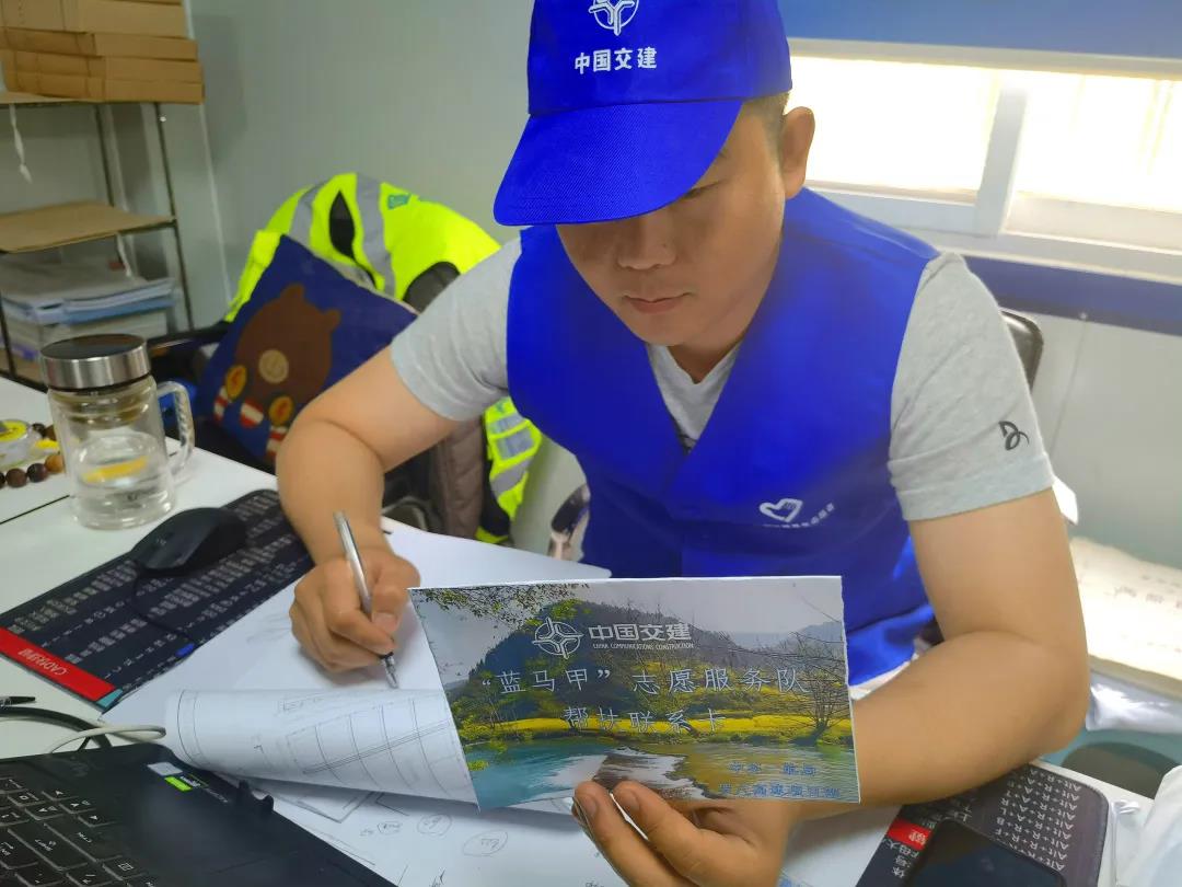 于是,一支由項目(mu)青年(nian)黨員和(he)入黨積極分子組成(cheng)的(de)12人“藍馬甲”志(zhi)愿服(fu)務隊成(cheng)立(li)了,共(gong)分兩組,利用(yong)每個周日下午(wu)兩個小(xiao)時(shi)的(de)時(shi)間,幫(bang)助村民做(zuo)些力所能及的(de)事。馮樂(le)樂(le)還設計制作(zuo)了幫(bang)助聯系卡,分發到每戶村民手(shou)中,上面印(yin)有醒(xing)目(mu)的(de)中交標(biao)識和(he)聯系方式,以及服(fu)務開放時(shi)間。