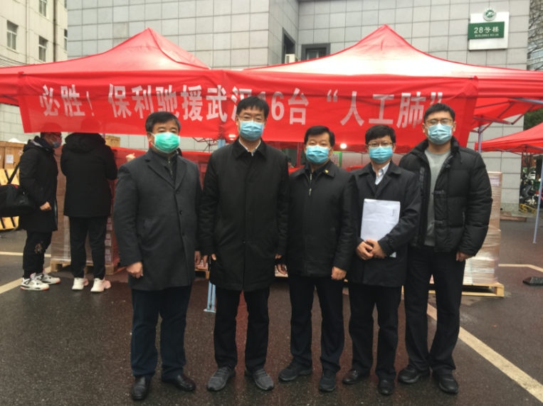 2月28日上午,曾兵(右二)在武漢同濟醫院16臺ECOM捐贈現場。