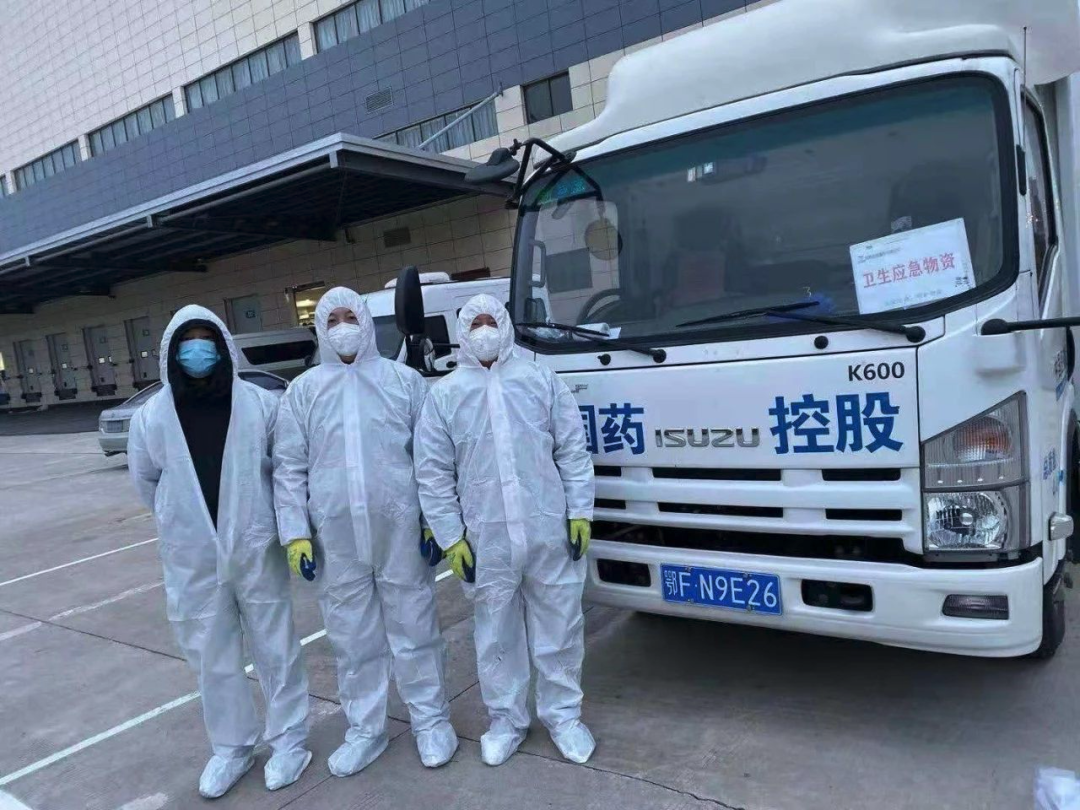 國藥集團工作人員連夜驅車購運防護服、口罩和消毒液等應急物資,全力以赴保障各醫療機構的防控需求。
