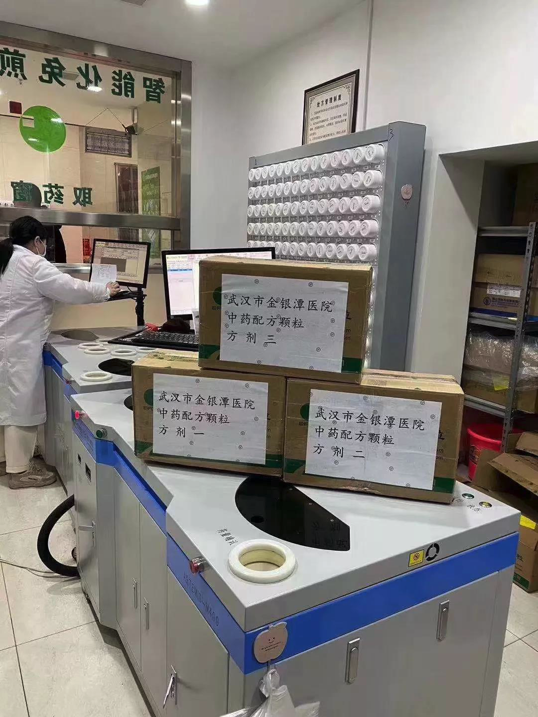 國藥集團下屬廣東一方配藥中心人員加班為金銀潭醫院調配防治處方。