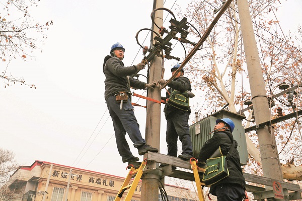 1月22日,河南修武縣供電公司員工在七賢大道南臺段實施臺區改造工程,保障客戶春節期間用電無憂。李建強 攝