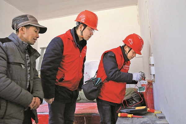 1月22日,福建浦城縣供電公司員工為九牧鎮蔣坑村火燒橋自然村的孤寡老人檢查電源開關線路。李義友 攝