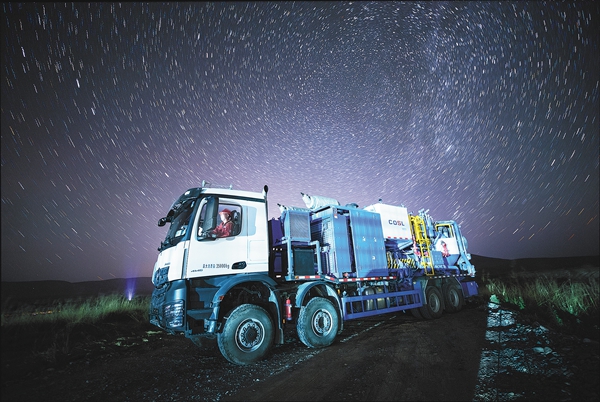 9月1日23時54分,昆侖山腳下的海油固井特種車剛完成作業,點點繁星升起。