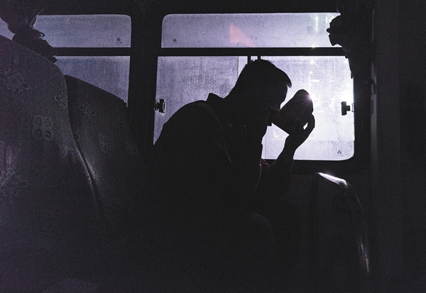 忙碌了一個晚上,負責帶隊作業的裸眼工程師楊隴杰在車里泡了碗方便面充饑。