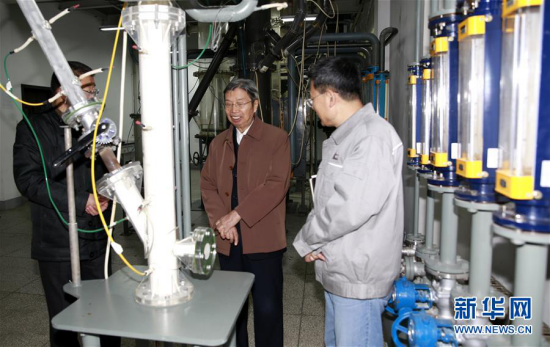 陳俊武院士(中)在中石化河南洛陽技術研發中心考察科研項目進展(2015年1月6日攝)。 新華社發