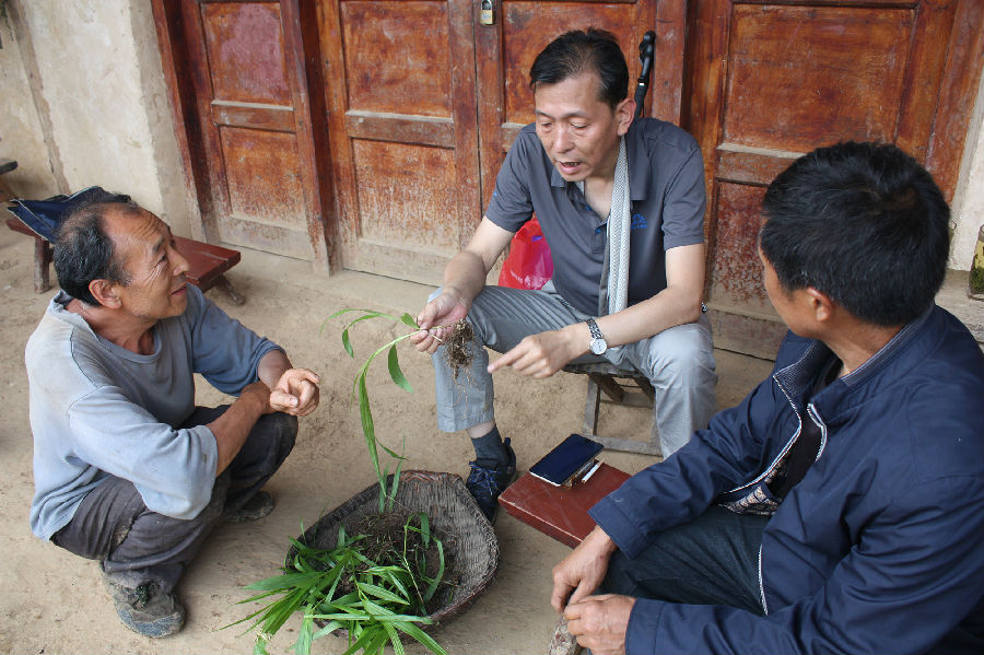 李俊峰給村民講解野生中草藥白芨的馴化育苗方法