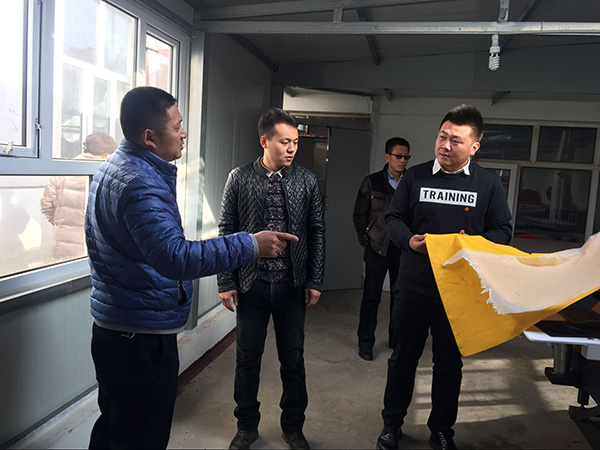 呂帥(右)與中鐵(tie)十九局扶(fu)貧領導小組到當地(di)服飾加工廠實地(di)考察