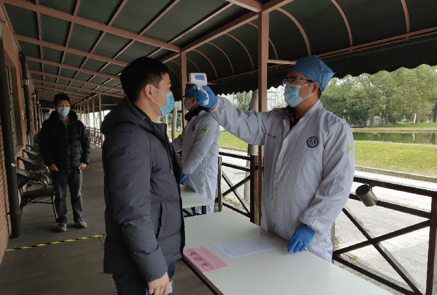 “進所區、進廠房人(ren)(ren)員采(cai)用嚴(yan)格(ge)人(ren)(ren)員權限提前(qian)審批制(zhi)(zhi),廠房嚴(yan)格(ge)控制(zhi)(zhi)進入(ru)人(ren)(ren)員,進入(ru)前(qian)有(you)志(zhi)愿(yuan)者對其進行身份(fen)核查(cha)、體溫測(ce)量(liang),進廠房后嚴(yan)格(ge)按照指定區域開工作業(ye)(ye)、不串崗,每個約100平方米的(de)工位不允(yun)許超過(guo)10個人(ren)(ren)同時(shi)作業(ye)(ye),完成作業(ye)(ye)立(li)即撤出(chu)廠房。”主管科(ke)研生產的(de)副所長車臘梅這樣說。