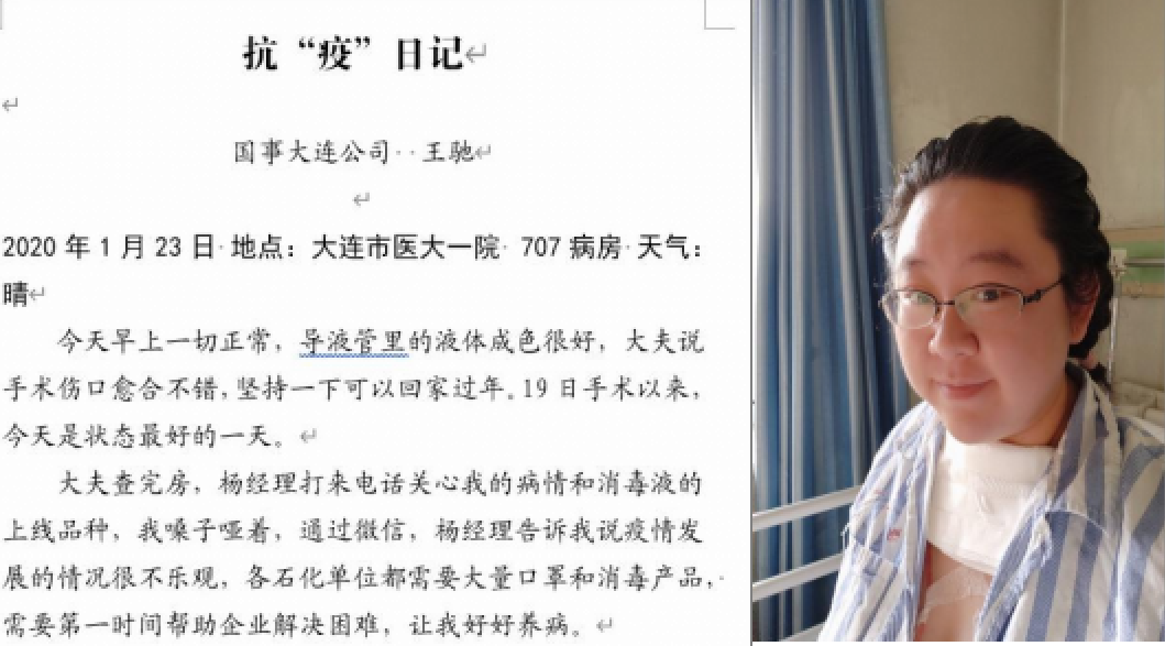 “從來(lai)沒有感覺武漢的(de)疫(yi)情離(li)我如(ru)此之近,我雖然做不了什么大(da)事,但(dan)已經牽頭(tou)負責日化用品框(kuang)架協議兩(liang)年多(duo)了,有一(yi)些經驗,雖然說(shuo)話費(fei)勁,但(dan)還可以微信聯(lian)絡,多(duo)一(yi)個人盡一(yi)份力總(zong)是好(hao)的(de)。”這是她在自己的(de)術后抗“疫(yi)”日記中提到的(de)。