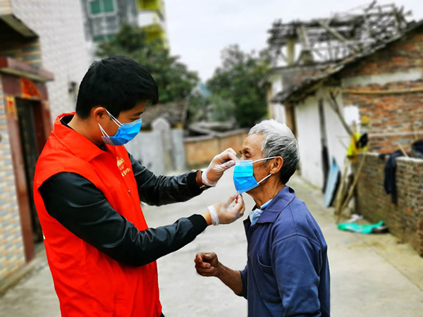 給貧困村民送口罩