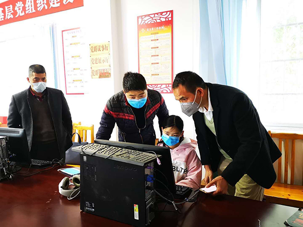 與學校老師督促貧困戶學生網課學習