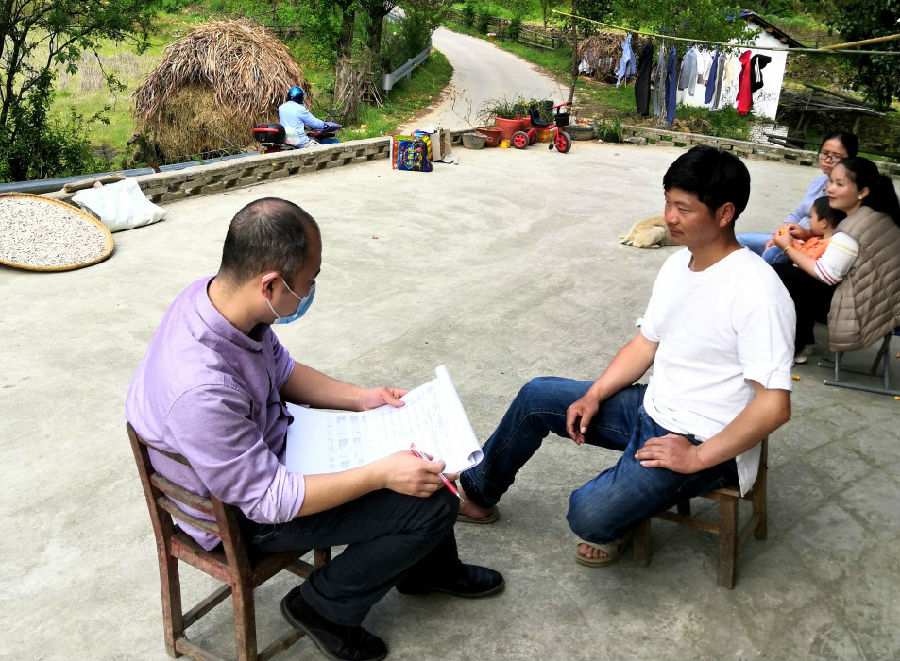 朱會恒(左)入戶排查賦閑勞動力